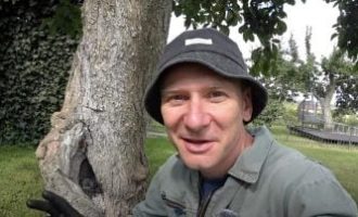 Na dno větší nádoby dejte kůru bohatou na živiny, rostlinu postavte a kořeny lehce přikryjte zbylou kůrou.