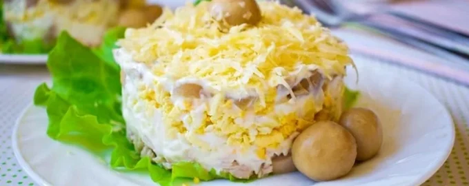 Budete potřebovat houby – 300 g (vařené nebo smažené), vařená vejce – 4 kusy, tvrdý sýr – 200 g. Tato kombinace produktů poskytuje dokonalou rovnováhu křehkosti, výživnosti a chuti.