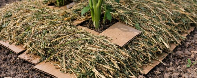 Hustá vrstva lepenky a trávy zcela zamezí přístupu světla, což zabrání růstu většiny plevelů.