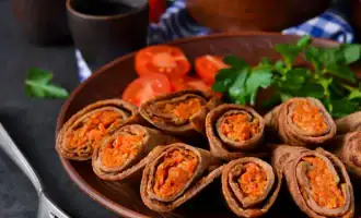 Pro krásné servírování lze palačinky stočit do malých závitků nebo šneků. Palačinky na červeném víně jsou příkladem toho, jak lze jednoduchý recept proměnit v gastronomickou událost. Mají neobvyklý vzhled, jemnou chuť a hodí se k různým náplním.