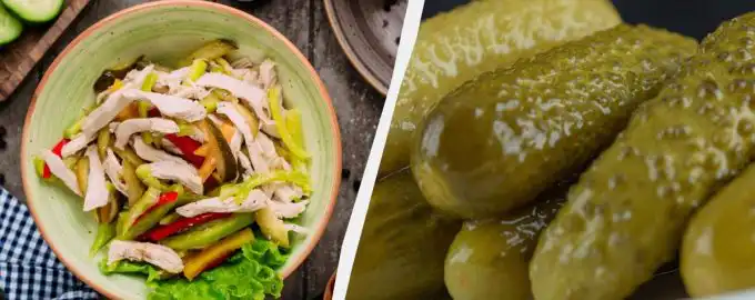 Jak připravit salát se solenou okurkou a kuřecím masem