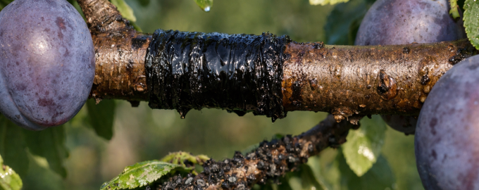 Mšice se zřídkakdy objevují samy – jsou „hnány“ mravenci. K zablokování jejich přístupu do koruny švestky používám dehtové pásy. Jedná se o pasivní metodu, která funguje nepřetržitě.